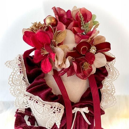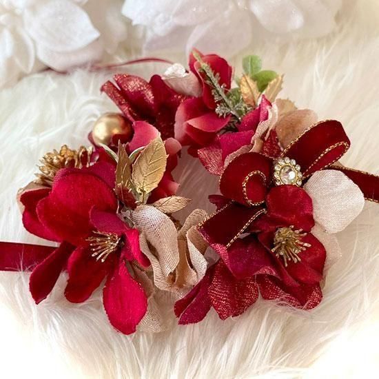 クリスマスにお正月にバレンタインに いろいろなイベントシーンにぴったりの キラキラ素敵なロイヤルレッドの花かんむり
