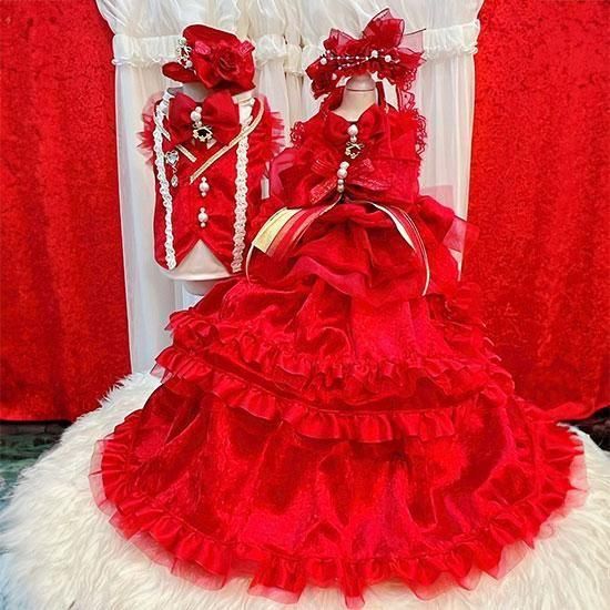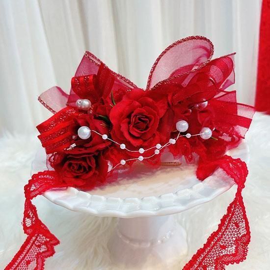 プレシャスルルドールから「ロイヤルシリーズ」誕生! ファーストロイヤルはさまざまなシーンで活躍できるロイヤルレッドです! ラグジュアリーなロイヤルレッドのヘッドドレス ロイヤルレッドドレスとあわせて華やかな彩りに